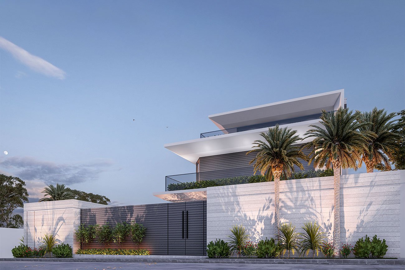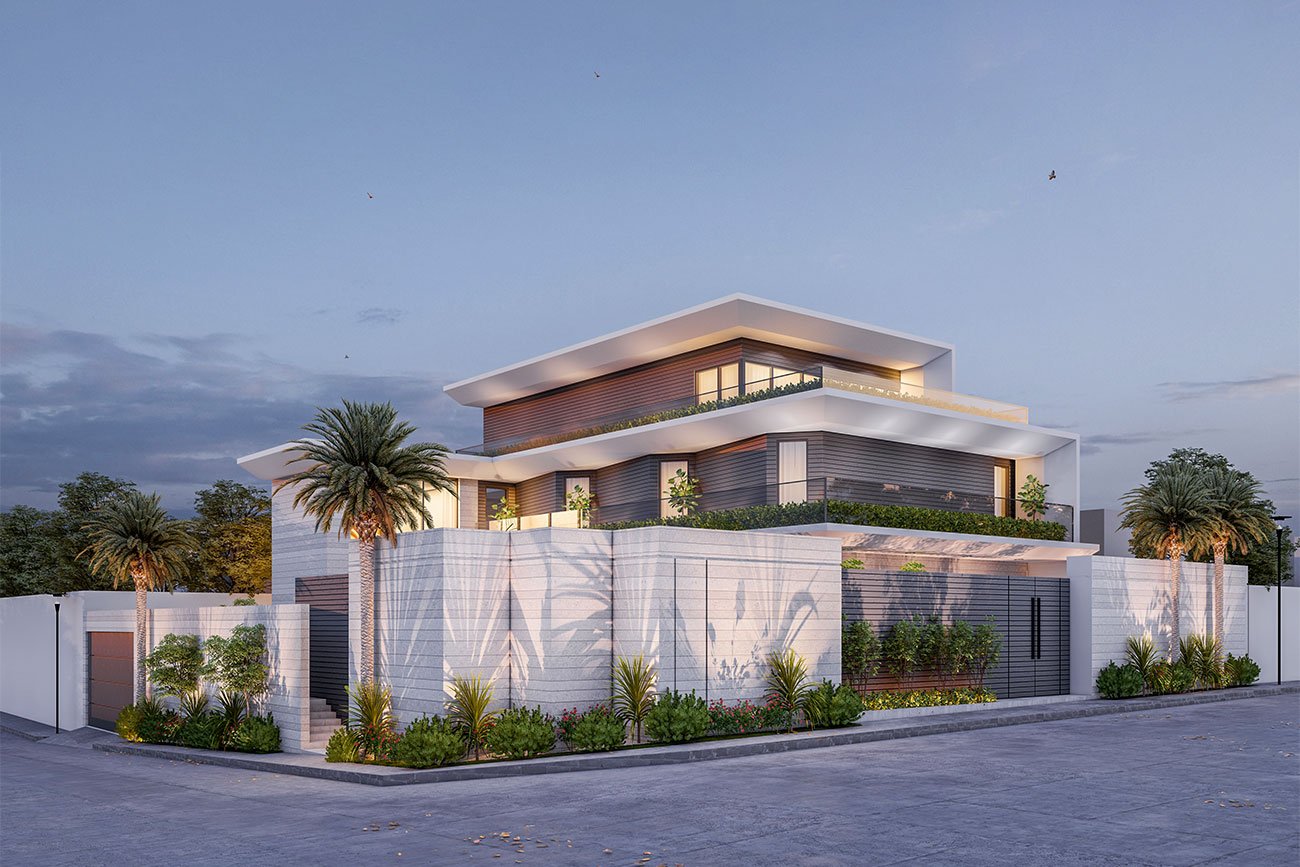 The defining architectural element of the villa is the folded wall concept, which shapes the façade, adding depth, dynamism, and a striking visual identity. This innovative design not only enhances the villa’s aesthetic appeal but also reinforces its modern character, seamlessly integrating form and function.